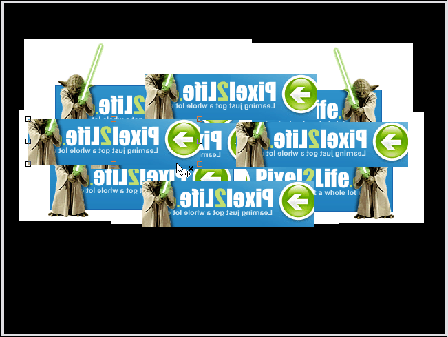 Step 2: Pick an image that you like and paste it all over the place… feel free to just use parts of the image, flip it around, invert it etc… just play around and drop stuff randomly. You can also use various images, so it’s really up to you at this point. I decided to just grab my sig from the P2L forums and dump that around a few times in various positions.