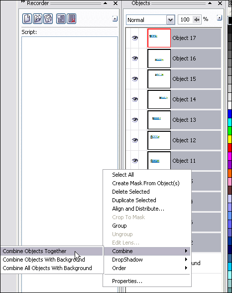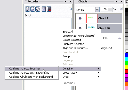 Step 3: Once you’ve got everything pasted the way you like it, select all the objects in your Object Docker and combine them to a single object layer.