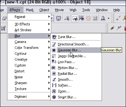 Step 5: Once you’ve distorted the images to your satisfaction (I’m easily pleased), you’ll need to blur it up to get the soft vibrant colors in the text. I’ll use a Gaussian Blur effect for this step.