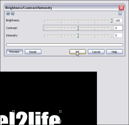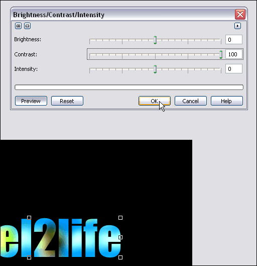 Step 2: We’re going to start off by cranking up the contrast on our overlay text to enhance the color and just brighten the text right up. Now, THIS is where you need to experiment. I suggest cranking up the contrast all the way up, but play around with the Brightness slider until you see something you like. If your image is very dark, I suggest you turn up the brightness quite a bit, apply it, then re-run the tool and increase the contrast. Like I said, you have to play around with this.