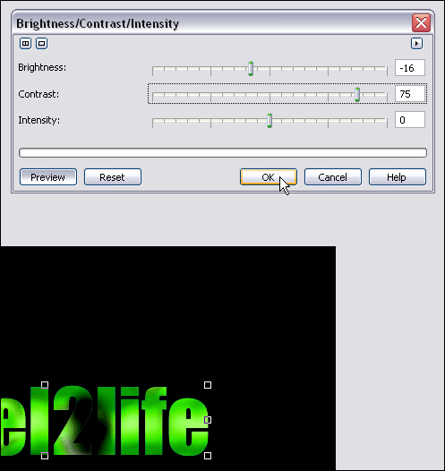 Step 11: Tweak this object’s contrast… I want to use this to darken up the bottom of the text a bit.