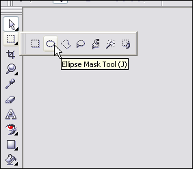 Step 7: Using the Ellipse Mask Tool, we’re going to cut out a chunk of the white text for our shine effect. Start by selecting the tool: