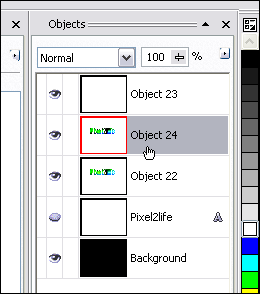 Now you should have a nice tidy Object Docker! Don’t worry… it’ll get real messy in a sec! Just click on the text overlay object and we’re ready for the next step.
