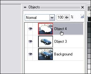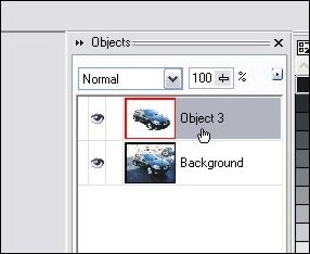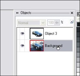 STEP 2 – Let’s add the car to it’s own layer now that we have it all masked off. Hit Ctrl-C then Ctrl-V to copy/paste the masked off portion as a new object. You can see in the object docker that we now have a background layer and new object layer with the car in it.