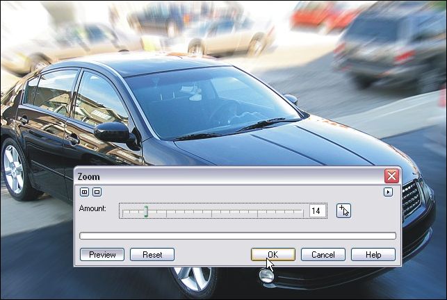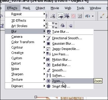 STEP 8 – Time to run the blur! Click on Effects > Blur > Zoom and play around with the blur intensity until you find a setting you like. Here’s my settings: