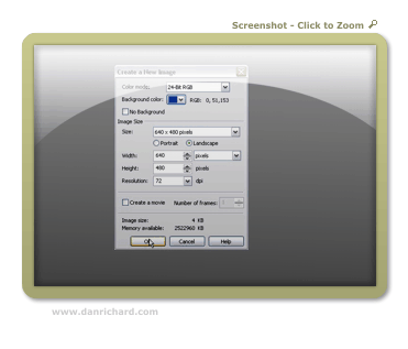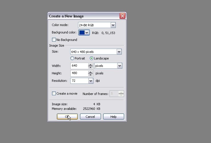Step 1: For the sake of taking screenshots that aren’t 1MB each, I’m going to work on a 640×480 image, but you can make this a fullsize wallpaper if you wanted to. I’m also going to go with a background color that is a bit dark, but very rich… I decided to go with a dark blue RGB code 0, 51, 153.
