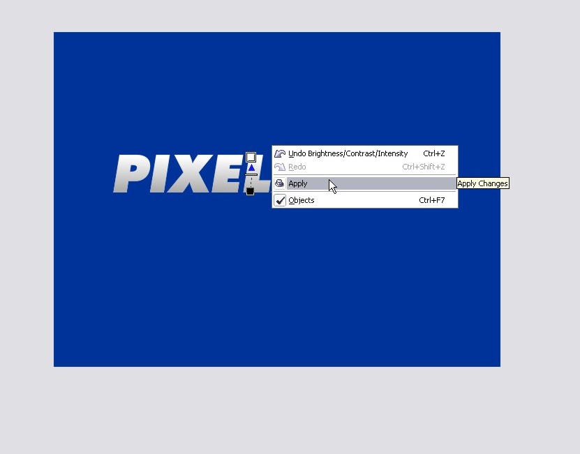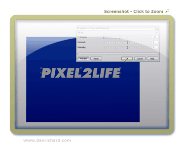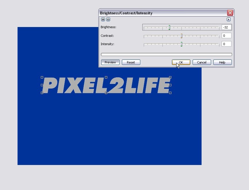 Now open the Brightness/Contrast/Intensity tool by clicking on Image > Adjust > Brightness/Contrast Intensity and darken the text up a bit by moving the brightness slider to the left a bit: