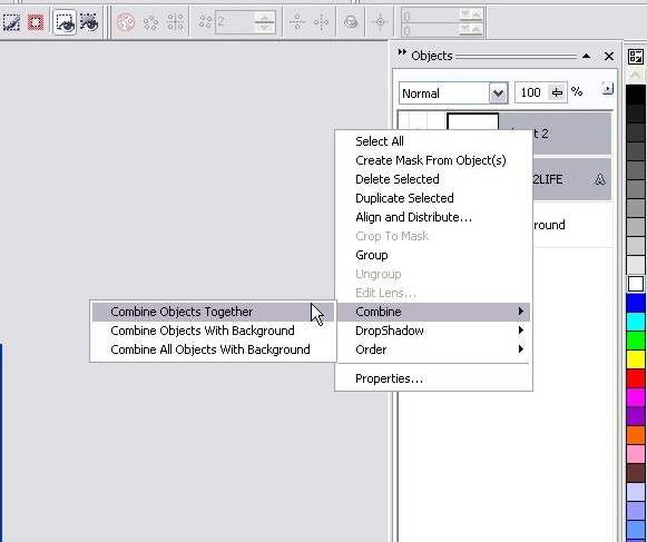 Now highlight both text objects and combine them into a single object. Your text object is now done and ready for some tweaking!
