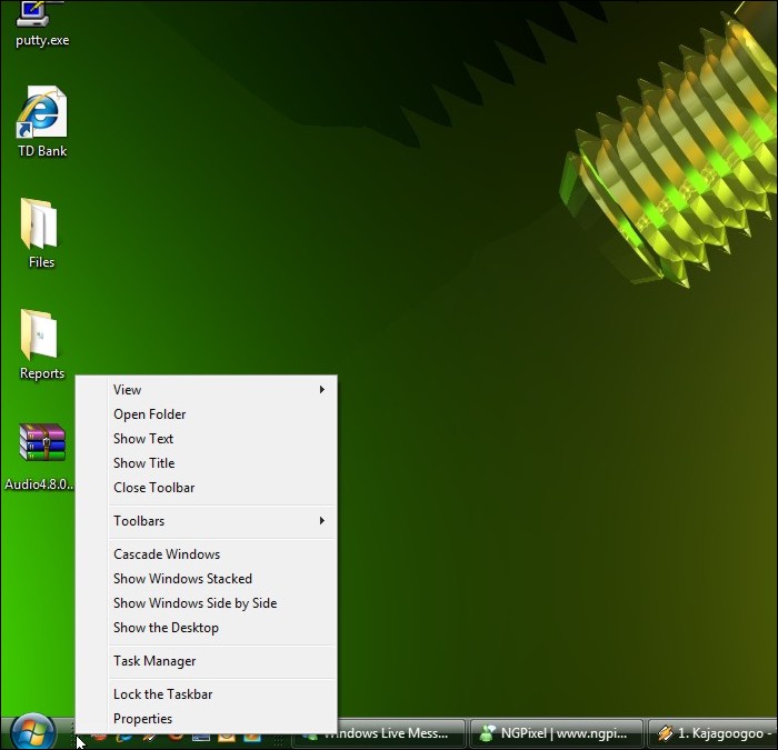 Step 1 – Start by right-clicking on the taskbar and then click on Properties: