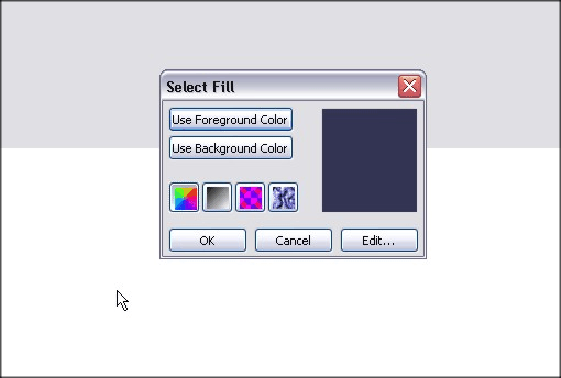 Step 1 – We’ll go through each option and I’ll explain how you use each one and show you an example of the fill in action.  So go ahead and create yourself a blank document and then double click the fill color to access the Select Fill menu:
