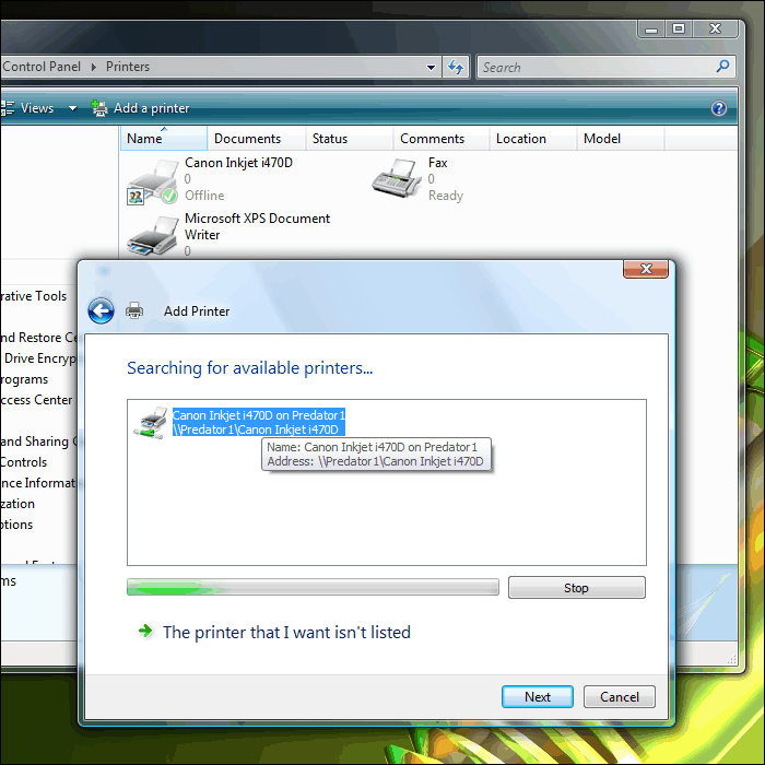 Adding the shared Printer is extremely easy, but may vary slightly depending on the version of Windows you are using to add the printer.  The steps will be very similar to the process we’ll use here in Vista, but you may have to install drivers for your OS.