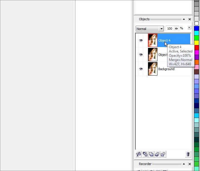 Step 1 – Let’s start off by opening up our source image in Corel Photopaint and making 2 duplicate objects of the photo. So in all, you should have the background layer, which is the photo, and two additional copies of the photo as extra objects: