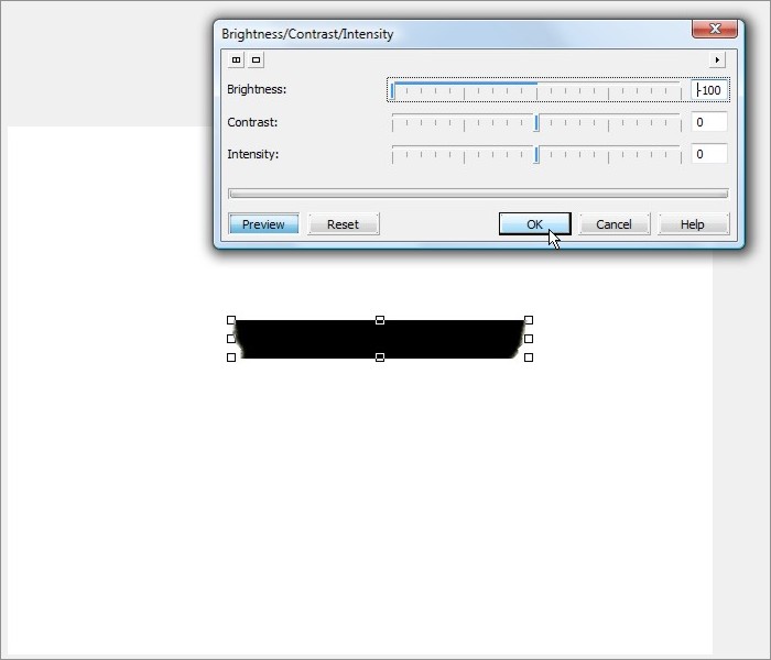 Step 11 – Open up the Brightness/Contrast/Intensity tool and turn the brightness dial all the way down so our new object copy is black: