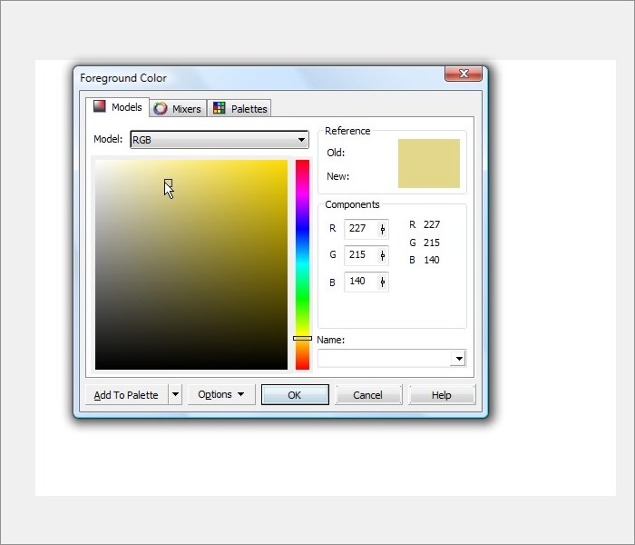 Step 2 – Next up, we’ll need to pick a color for your masking tape… masking tape tends to be a sandy color, something like sandstone, so I’ll go with RGB color code 227 215 140. Make this your background and foreground color: