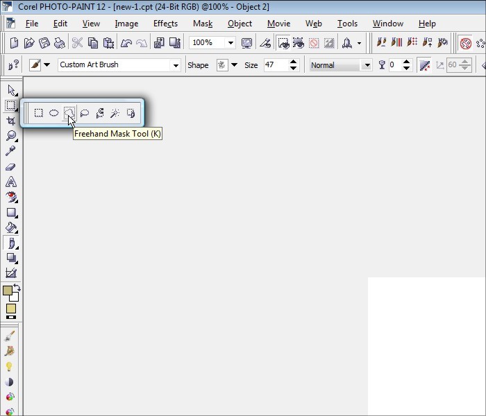 Step 8 – Now click the mouse where you want to start your mask (I started at the top) and drag it to a point farther down and click again. You’ll see your mask has started to form… down go down a bit more and click again until you are completely past the bottom of the tape. Now click around the outside of the tape to complete the mask and double-click on the last connection point: