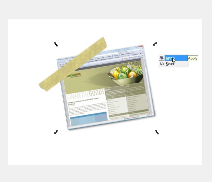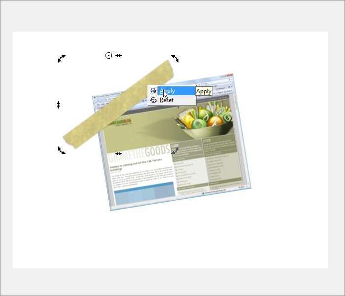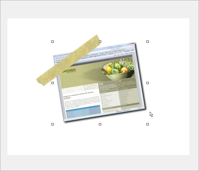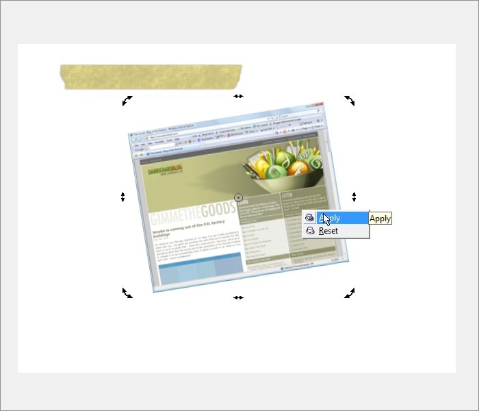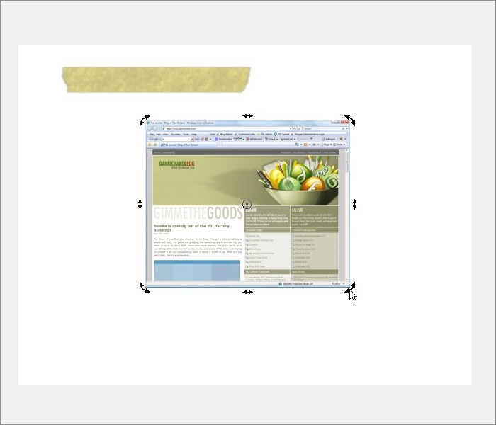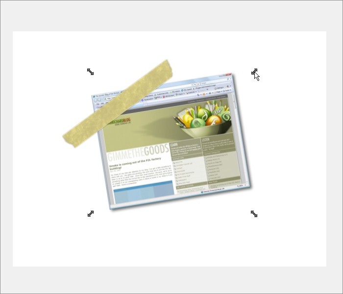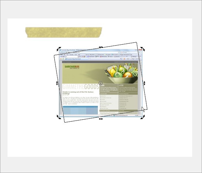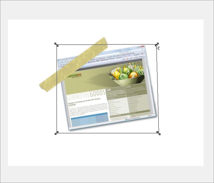 Step 18 – Now click on the image until you get the rotation arrows showing on each corner of the image like this (you’ll also notice in the next screenshot that I moved the tape out of the way a bit):