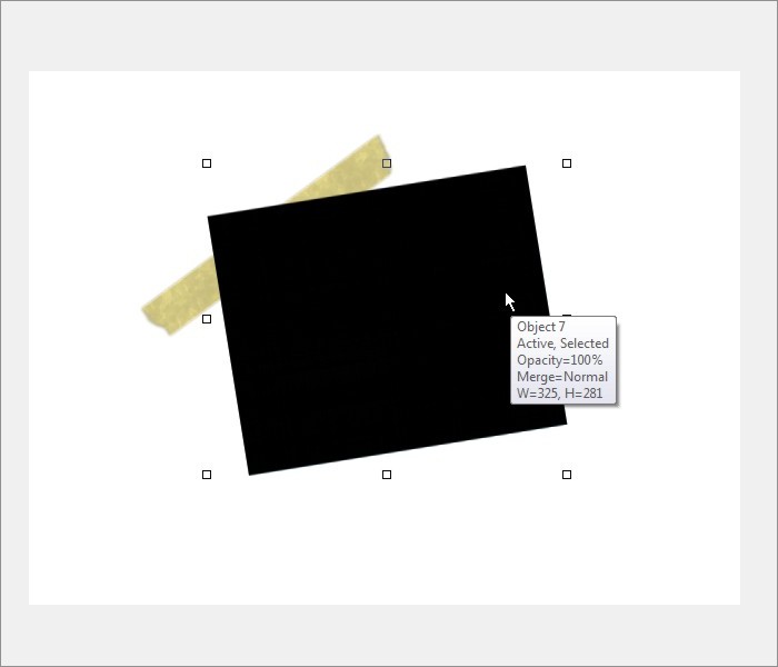 Step 17 – The tape is going to be on top of the image, not under it, so move the new image object below the tape object in the Object Docker:
